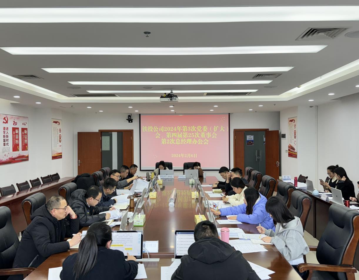 2024年2月6日下午,铁投公司召开2024年第3次党委(扩大)会议,传达学习习近平总书记近期重要讲话精神及近期中央、省、市有关会议、文件精神和领导讲话精神。市J9集团官方网站集团总经理助理、铁投公司党委书记、董事长孙乐主持会议,公司班子成员,各部门及各子公司负责人参加。