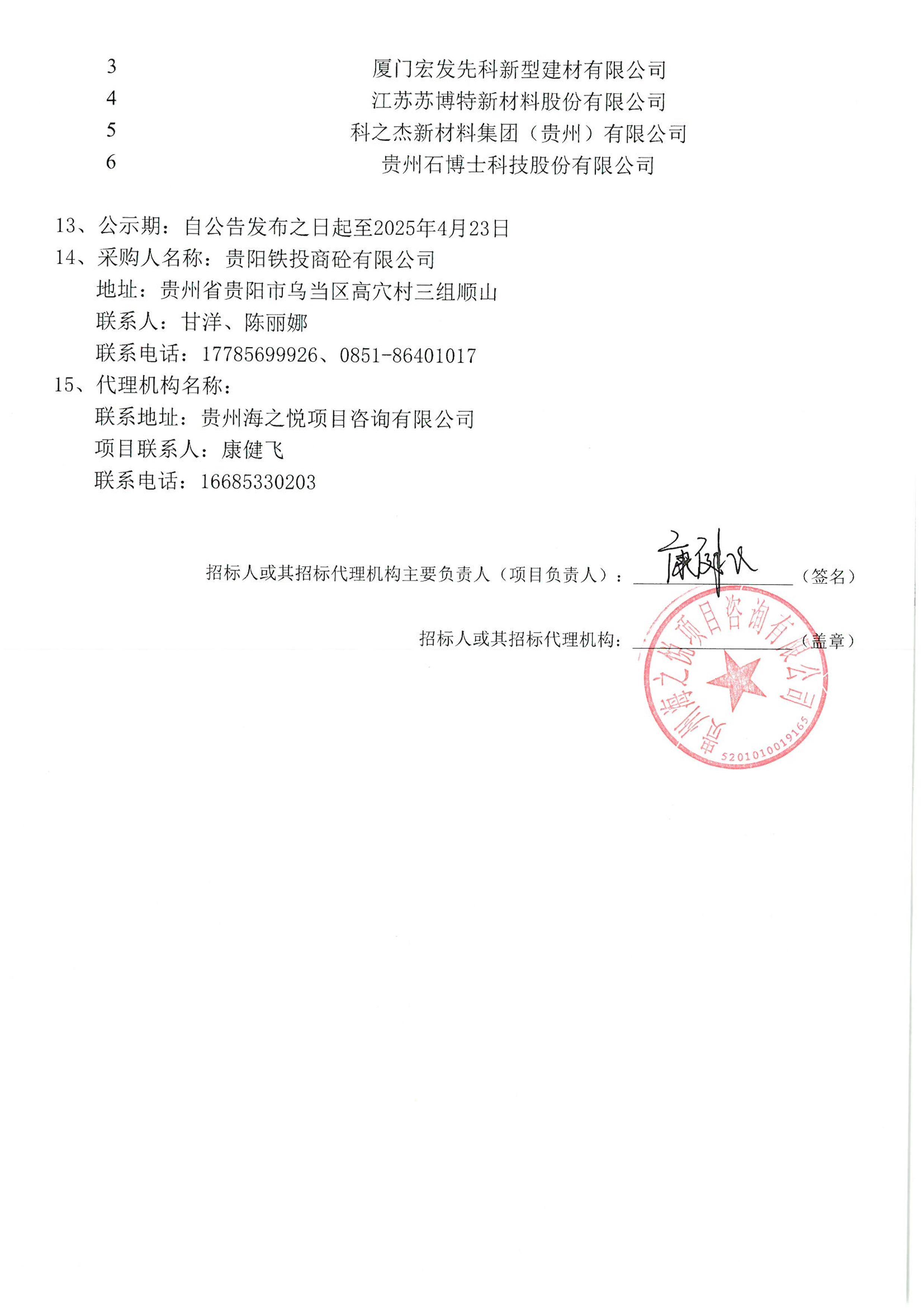 下一篇 贵阳铁投商砼有限公司2025-2027膨胀剂原材料供应商入库采购中标(成交)结果公告