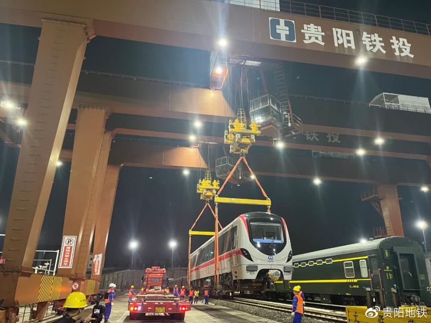 据了解,贵阳轨道交通3号线一期工程共配置44列电客车,电客车从南京浦镇出厂后,由上海宝冶集团组织完成部分车辆公铁联运,充分利用铁路资源完成长距离地铁车辆运输。