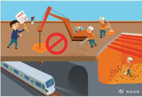 《贵阳市城市轨道交通条例》第二十一条规定:城市轨道交通重点保护区内除必需的接驳通道和市政、园林、环卫、人防等工程外,不得进行其他建设活动。为了维护轨道交通结构及运营安全,任何单位和个人不得有下列危及地铁设施安全和损害其工作效能的行为: