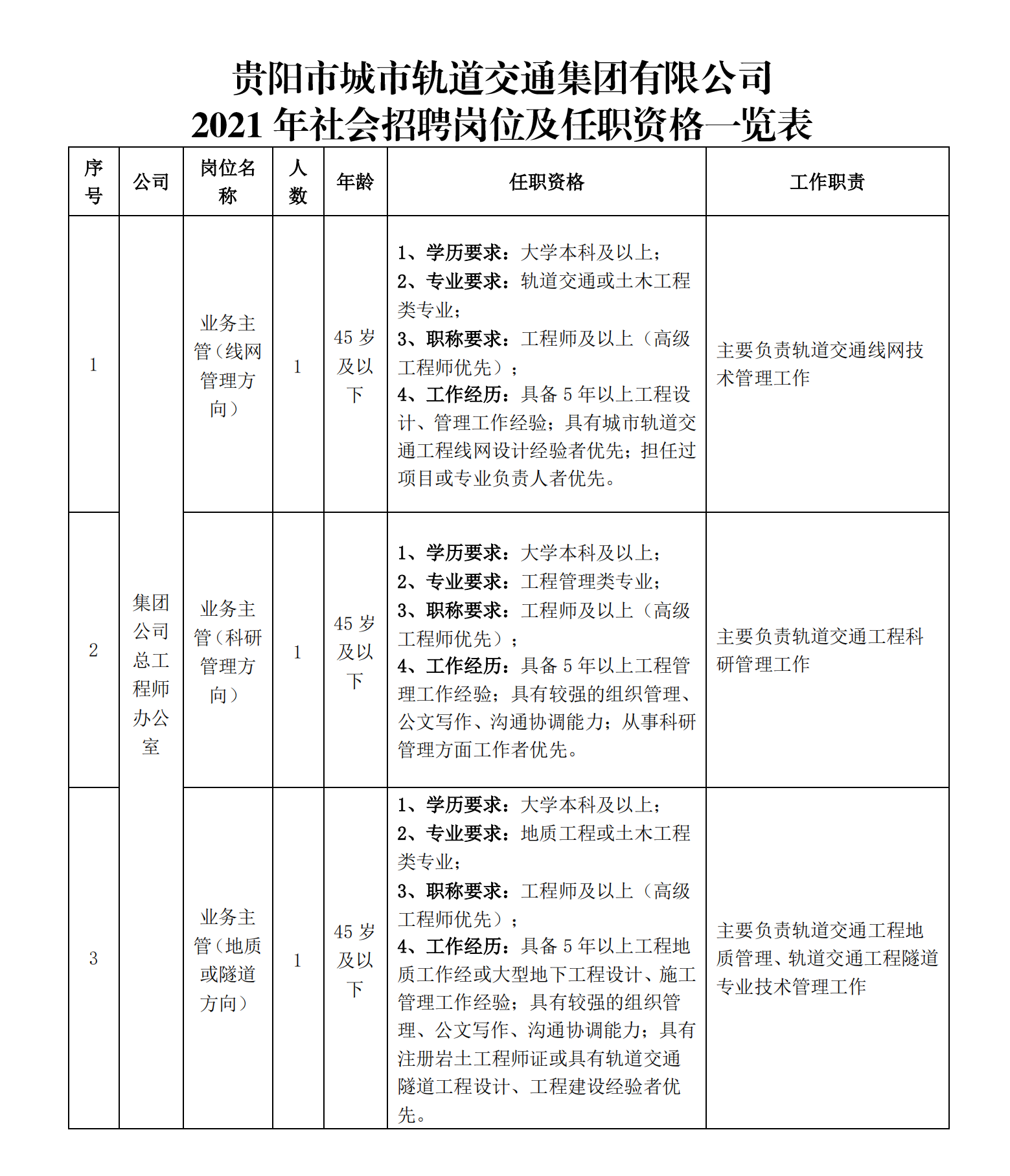 贵阳市城市轨道交通集团有限公司2021年社会招聘公告