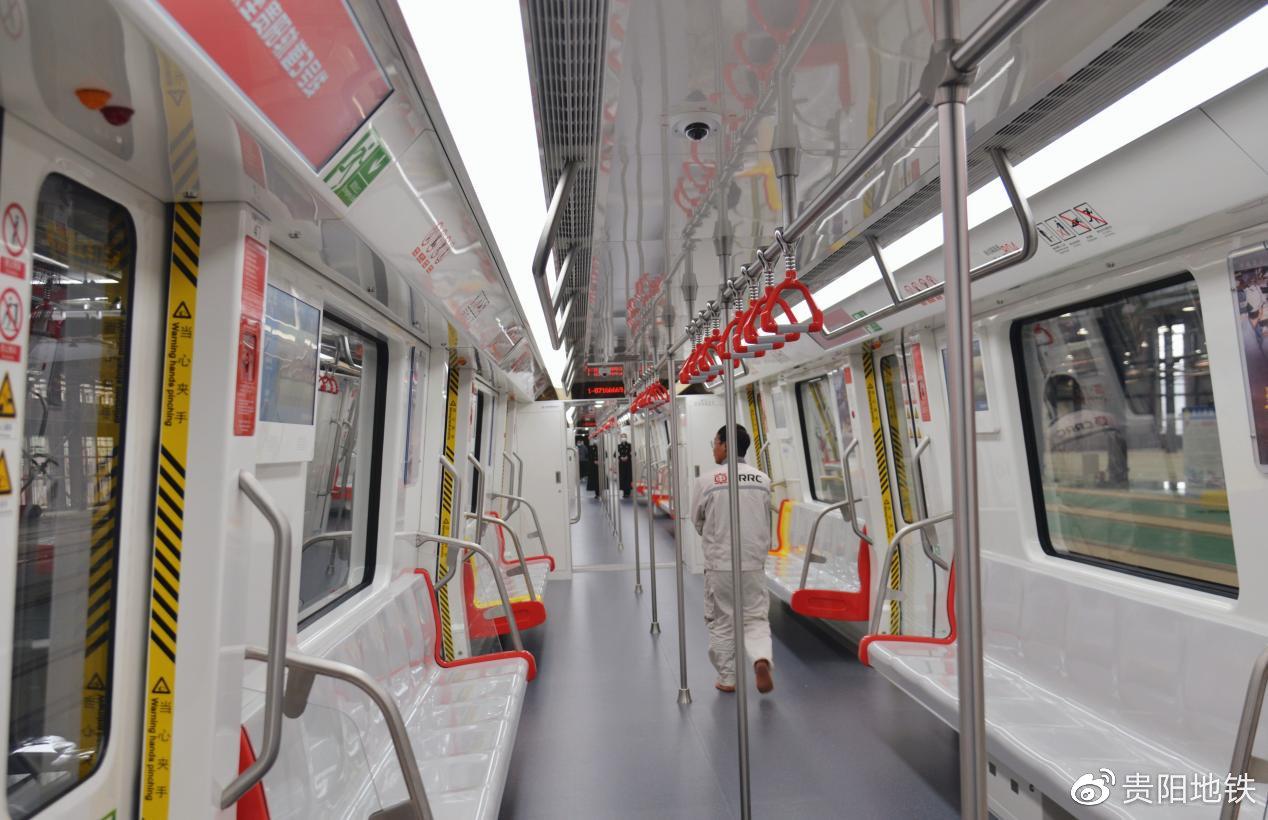 贵阳轨道交通3号线也是贵阳首条最高运营速度达到100km/h的线路,3号线电客车内饰大方明快,造型线条简洁,以线路色作为座椅和吊环的装饰色,给人以柔和的乘车氛围。车体红色腰带为3号线线路色,车身底色以浅灰色为基础色,让电客车活泼中不失沉稳,凸显了贵阳的蓬勃发展和美好未来。