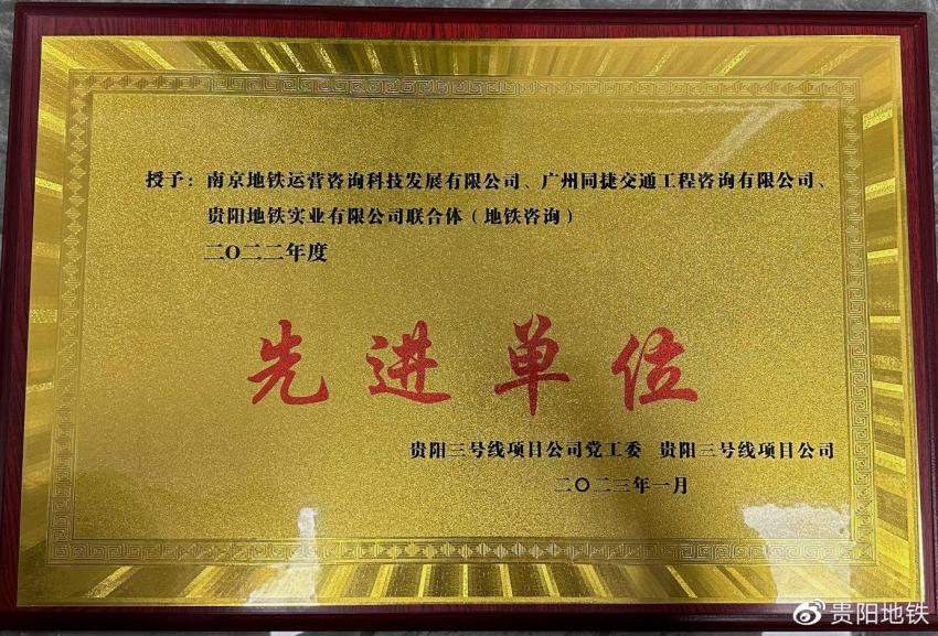 1月13日,贵阳轨道交通三号线一期工程建设管理有限公司召开2022年度先进单位表彰大会暨“综合联调”启动会。会议对2022年度贵阳轨道交通3号线优秀参建单位进行表彰,地铁实业公司荣获“2022年度先进单位”。